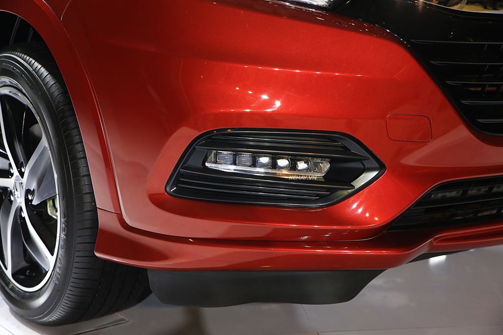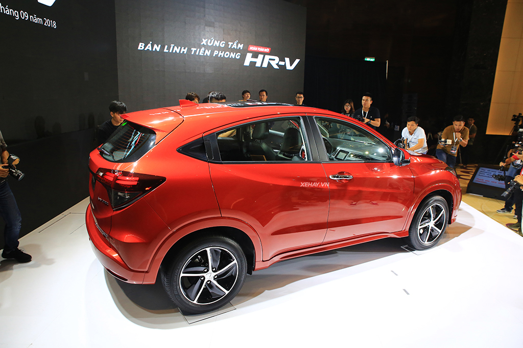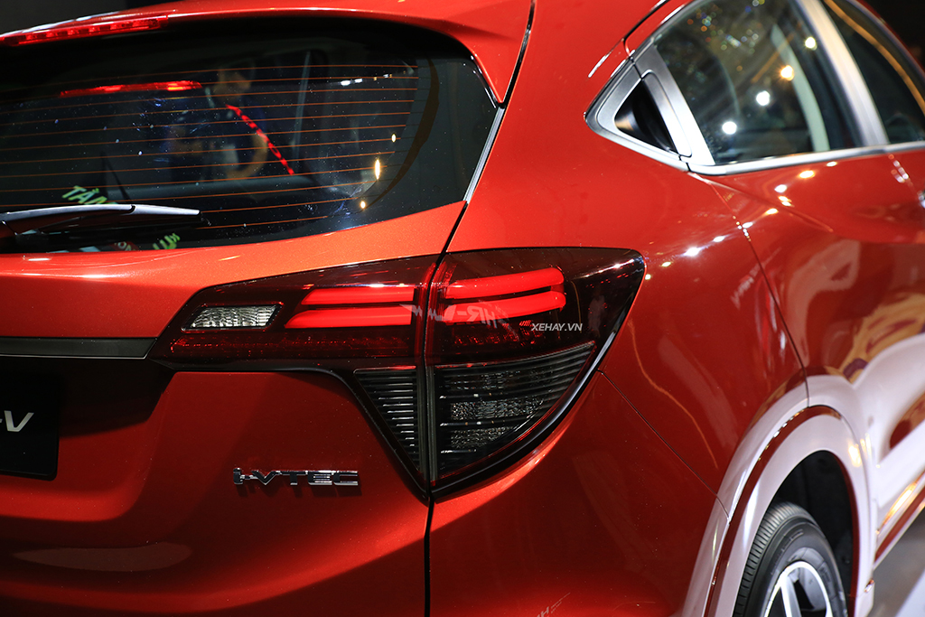 Phần đuôi xe cũng rất ấn tượng với cụm đèn lớn với thiết kế 2 mảnh dạng bàn là nằm ngang. Nhờ vậy thôi mà lại khiến phía sau của HR-V hài hoà và cân đối hơn, không có cảm giác bị gù xuống như người anh CR-V. Cửa khoang hành lý thiết kế sẻ thẳng xuống cản sau. Phần cản sau được thiết kế nhô ra, chứa đèn phản quang và các cảm biến lùi. Phiên bản cao cấp sẽ có camera để quan sát phía sau.